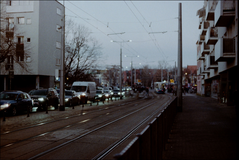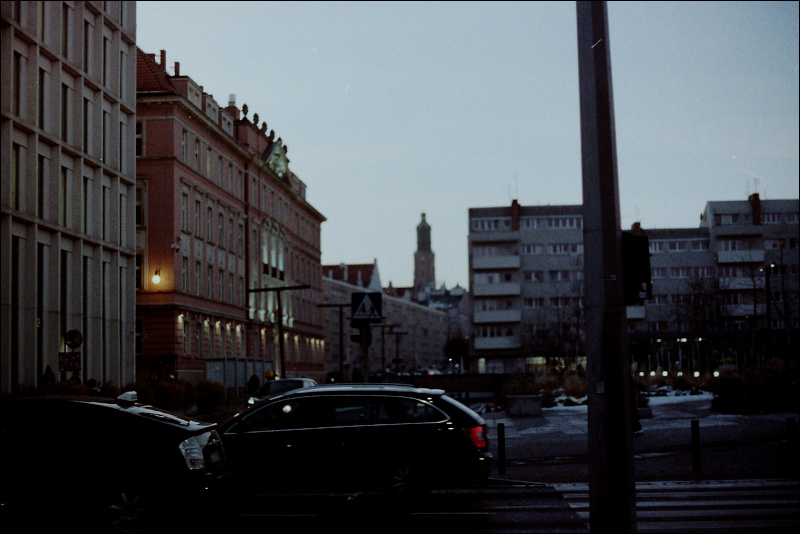 Всего за время поездки во Вроцлав я отснял три с половиной плёнки. Три (ну, две с половиной) чёрно-белые, низкочувствительные и при этом высококонтрастные Adox HR-50, и одну вот эту цветную.